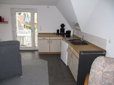 1.Obergeschoss und verfügt über ein Schlafzimmer, eine Wohnküche mit Küchenzeile sowie ein Bad mit Dusche und WC.